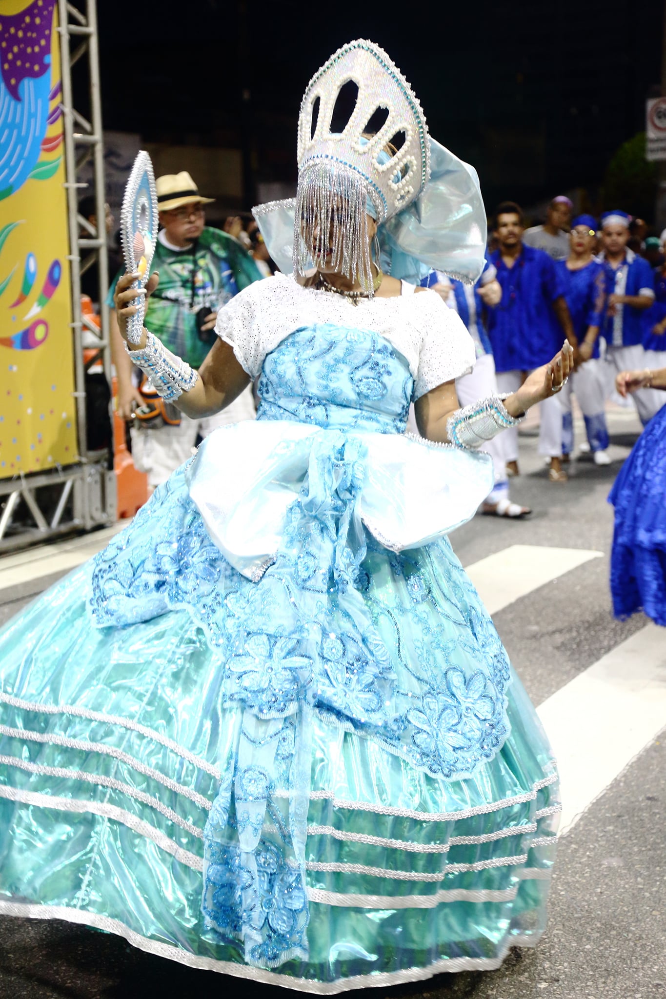 o projeto sócio-cultural da entidade. As cores são azul, verde, branco e dourado e prateado, seu repertório é de autoria própria e fala sobre resistência, religião e beleza da raça negra.