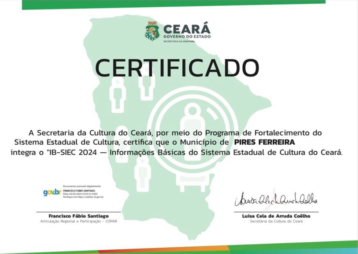 SOMOS A SECRETARIA MUNICIPAL DE CULTURA, TURISMO E JUVENTUDE DA CIDADE DE PIRES FERREIRA. LOCALIZADA A 330KM DA CAPITAL. TEMOS UMA POPULAÇÃO ESTIMADA EM 10.601 NO ULTIMO SENSO.Vídeos