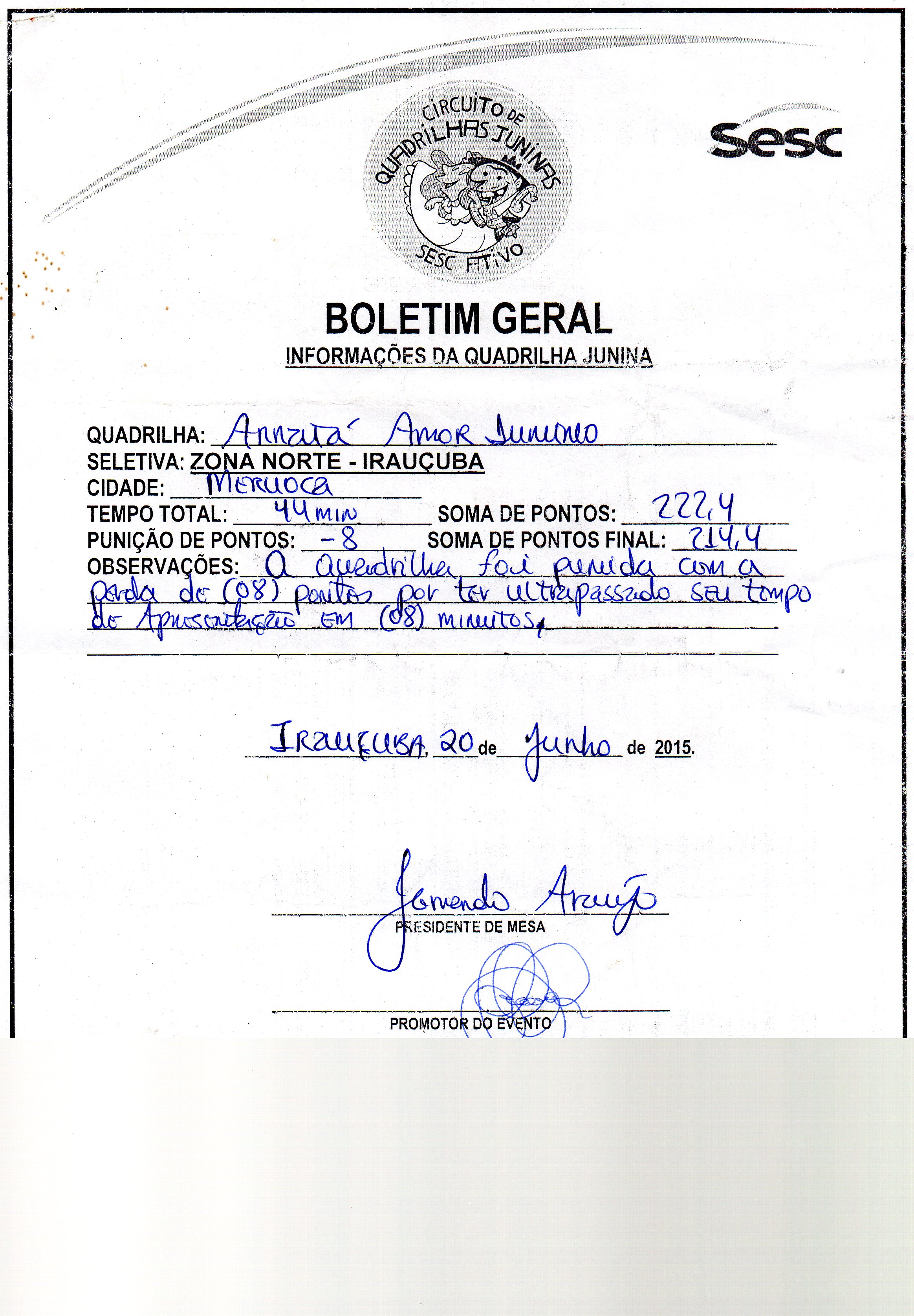 O grupo foi criado no dia 13 de Março de 2012 por algumas senhoras do municipio de Meruoca, e tem com o objetivo complementar o tempo livre dos jovens e movimentar a comunidade por meio do movimento junino, fomentando o tradicionalismo das festividades juninas, e promovendo a formação sócio-cultural, garantindo a participação de todas as faixas etárias em suas atividades e fortalecendo a cultura dentro dos festejos juninos, destacando temáticas que valorizam a cultura nordestina. O grupo incentiva dançarinos a preservarem as festas juninas, oferecendo-lhes oportunidade de descontração, socialização e ampliação de seu conhecimento sobre a cultura, ressaltando seus aspectos, popular e socialconheça os temas por nós trabalhados: