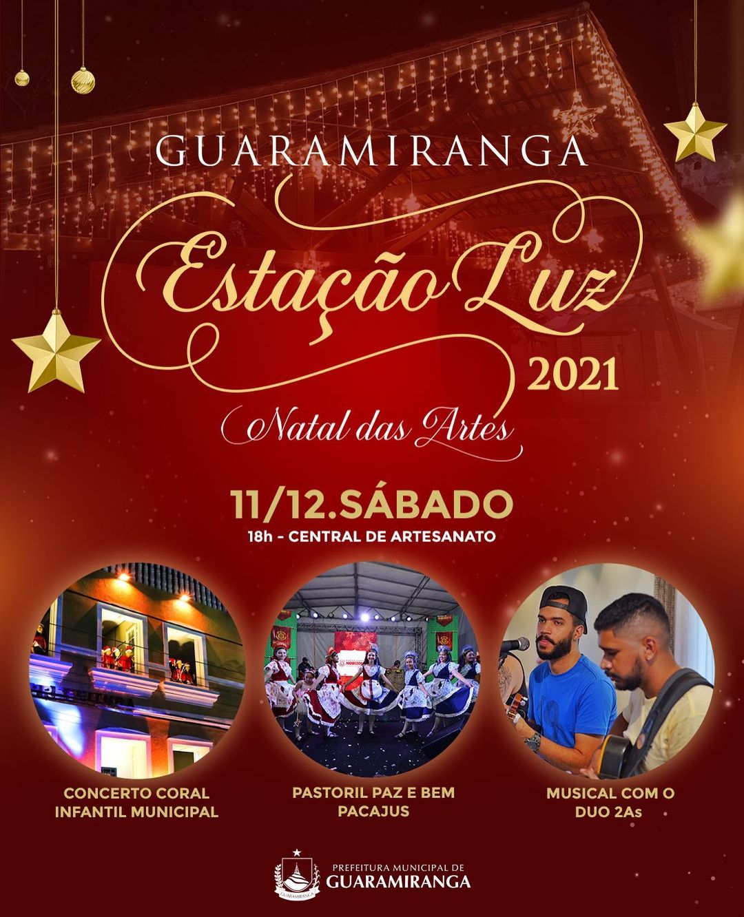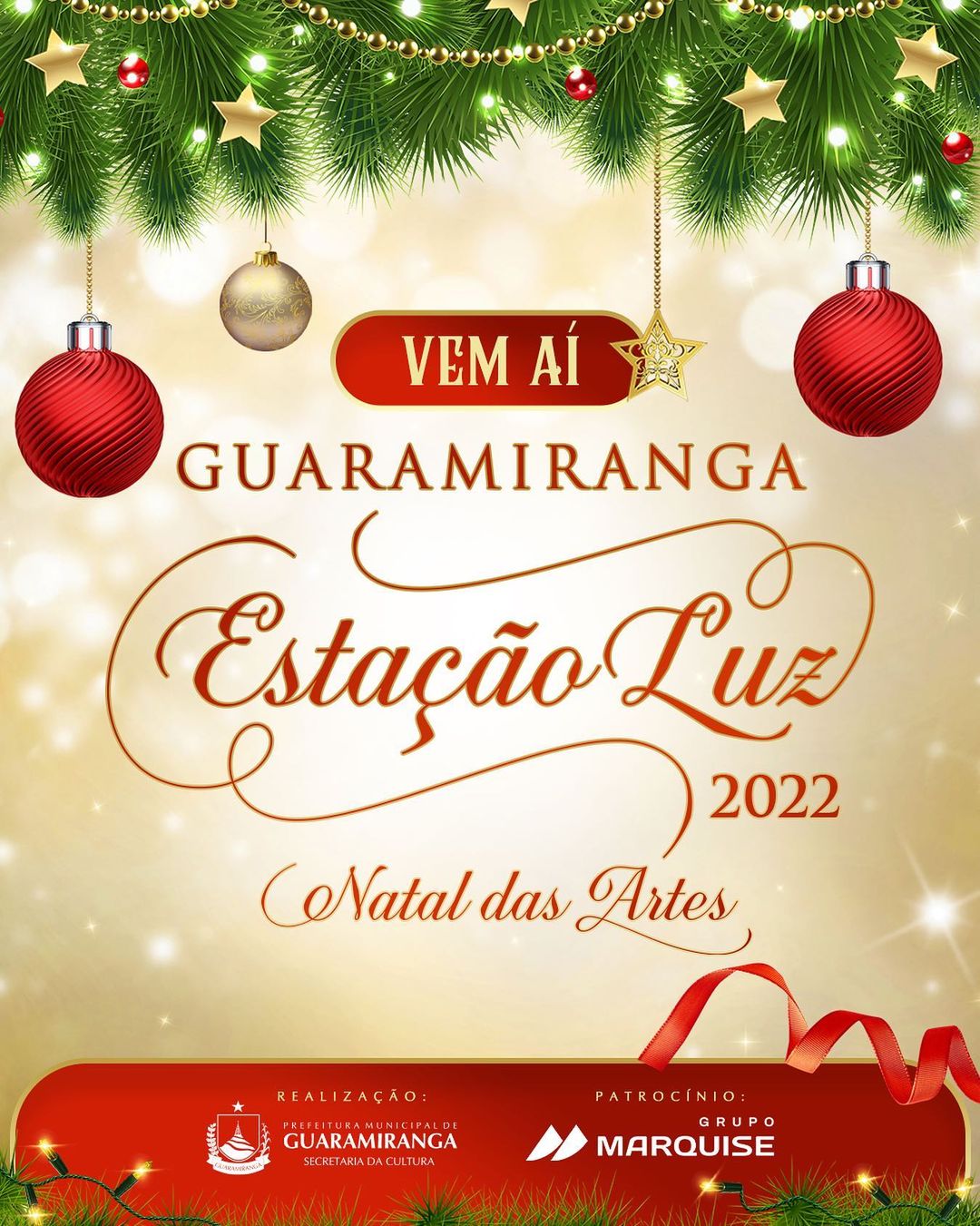 E para comemorar a vinda do filho de Deus, a @prefguaramiranga, por meio da Secretaria de Cultura, e o @grupomarquise convidam você e sua família para a "Guaramiranga Estação Luz - Natal das artes".