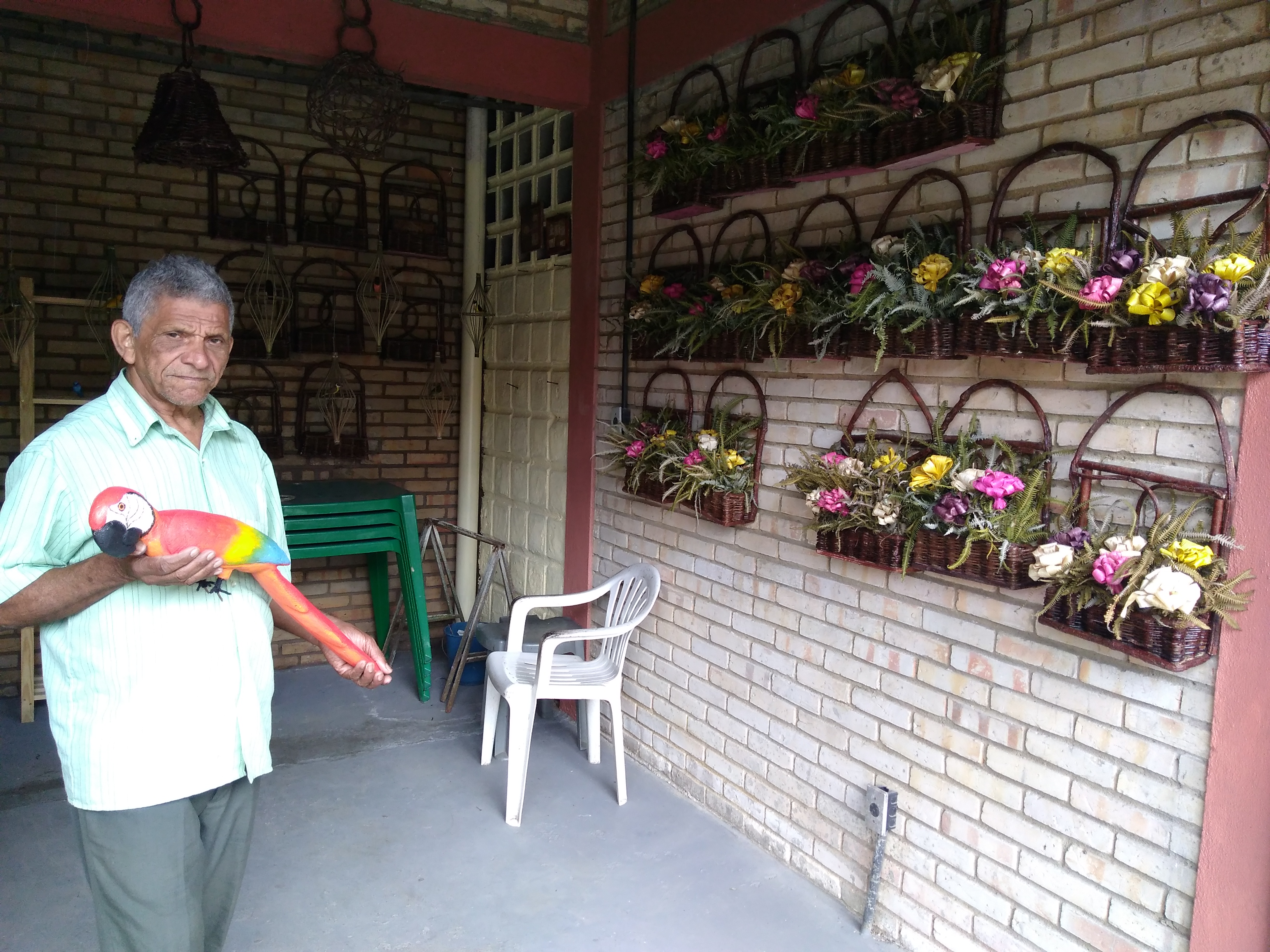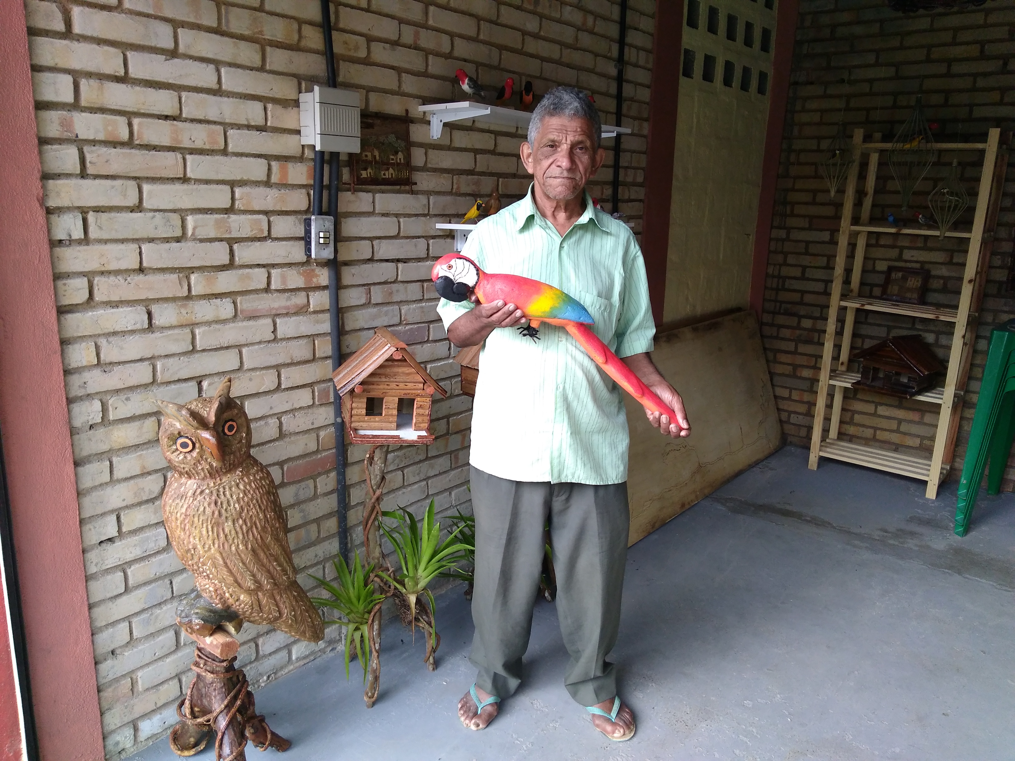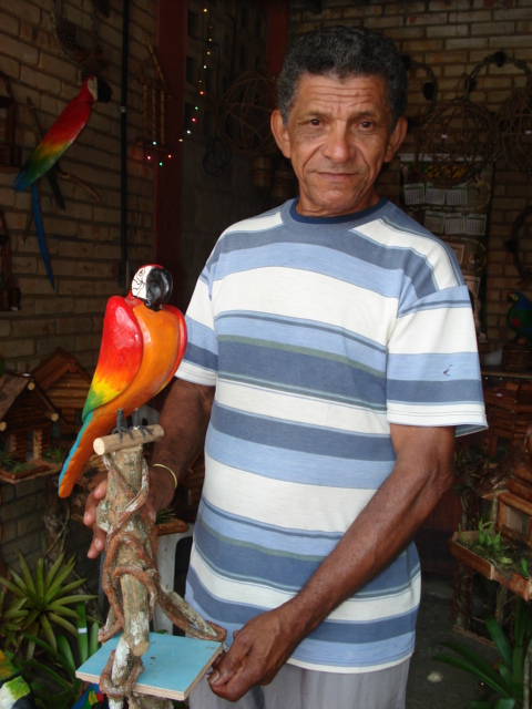 Trabalha com artesanato e como mateiro desde 1970.Seus trabalhos incluem artesanato de figuras de pássaros esculpidos na madeira, natureza morta e com cipós.