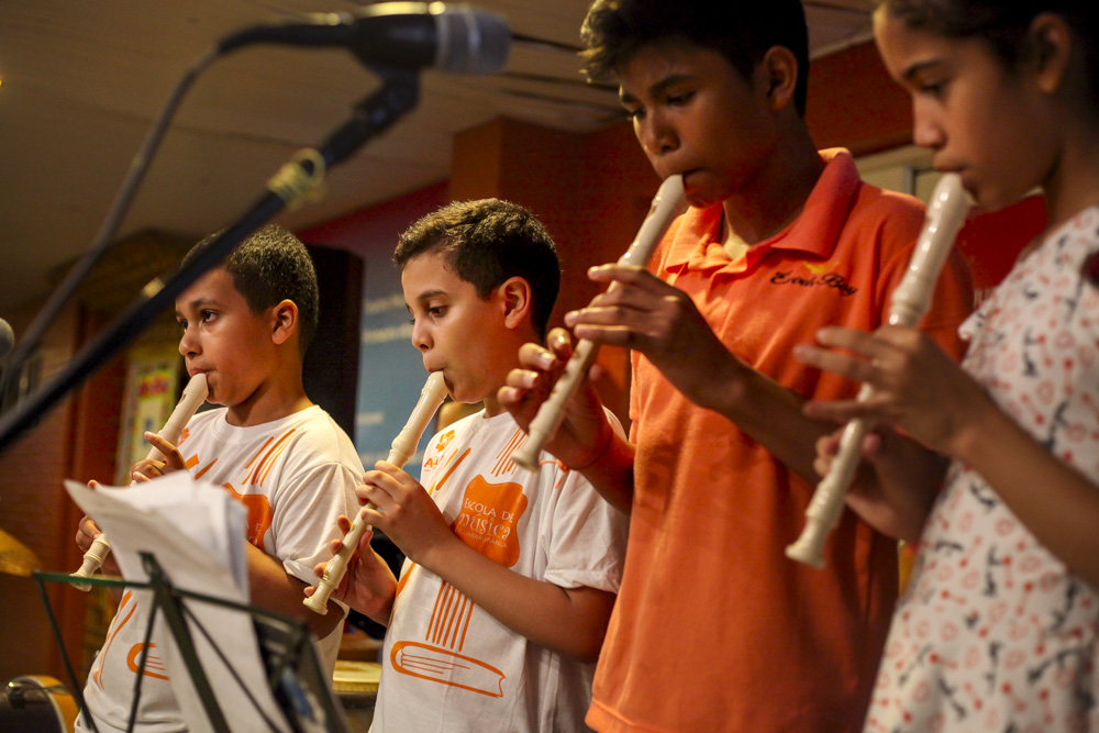 A partir de cursos nas linguagens de Música, incentiva a formação de grupos que, compostos pelos jovens educandos, tornam-se expoentes dos resultados dos processos de fruição e criação artísticas experimentados no itinerário formativo do projeto, tendo como uma característica importante a criação de um núcleo de produção de instrumentos musicais (Oficina/escola de Luteria) e de uma orquestra (orquestra Cidade da Arte). Desde 1997, a Escola incentiva a produção que anima uma importante cena musical, ao mesmo tempo que abre espaço para que essa produção participe do circuito turístico-cultural que a cada dia mais se desenvolve na região.