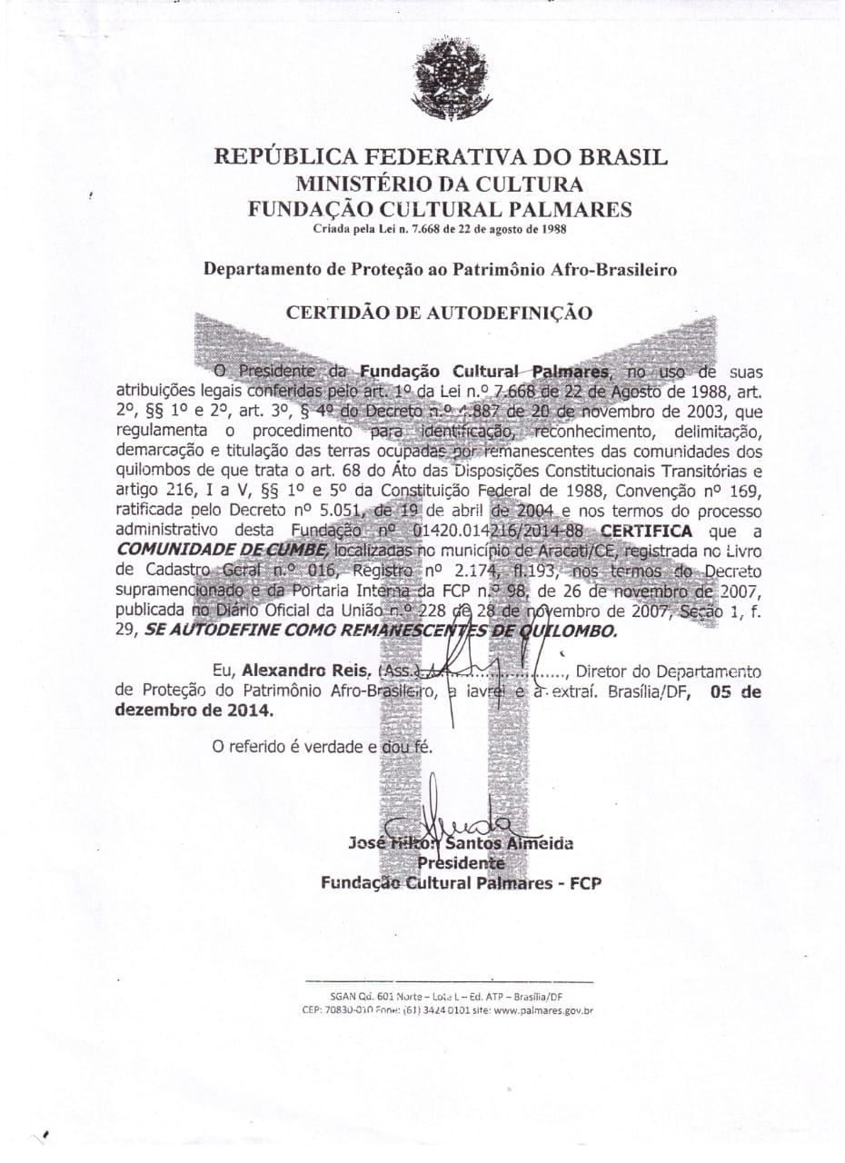 Endereço: Quilombo do Cumbe, 00 , Zona Rural, 62800-000, Aracati, CE