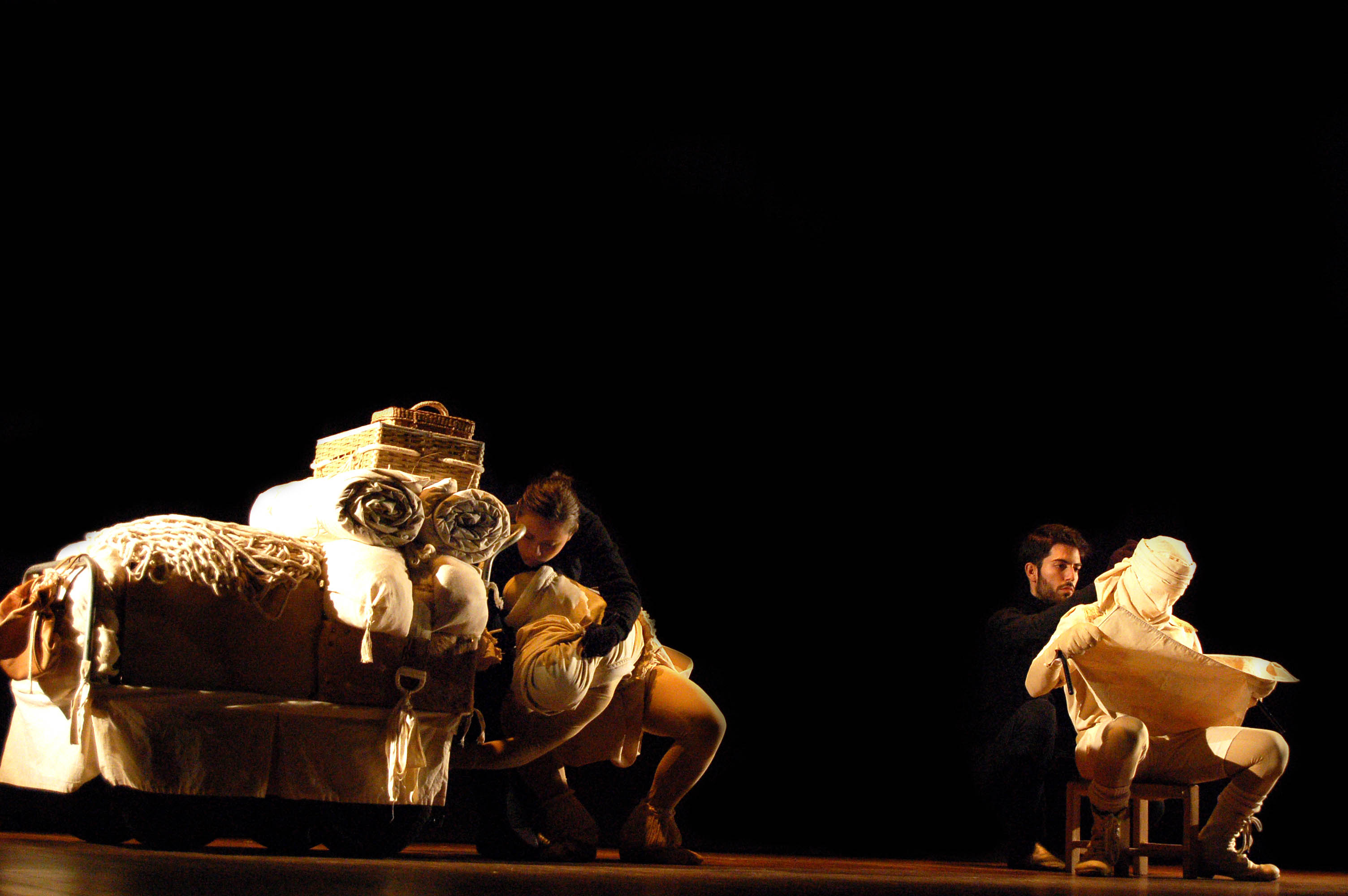 Nosso trabalho orienta-se por construir e sistematizar princípios formais de composição, explorando o gesto (em sua construção, definição e separação) e a noção expandida de narração (como contraponto aos elementos dramáticos).
