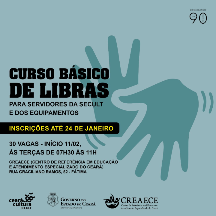 O Curso de Libras tem como objetivo de promover a cidadania surda, por meio da capacitação na linguagem de Libras para servidores públicos e vinculados dos equipamentos culturais da SECULT CE, no sentido de promover a comunicação e o acesso às informações e a garantia de direitos básicos dos cidadãos surdos, os quais devem ser oferecidos pela administração pública.