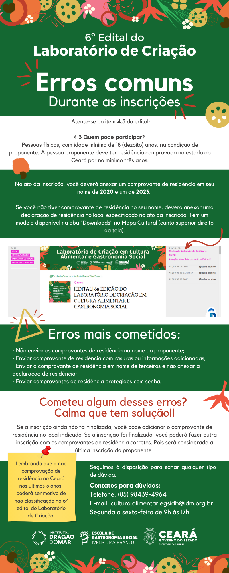 Contatos para dúvidas: