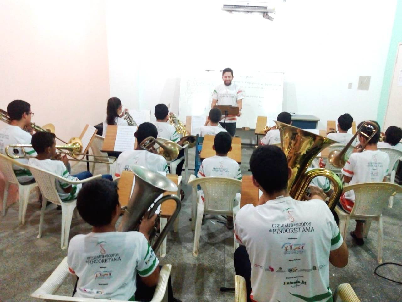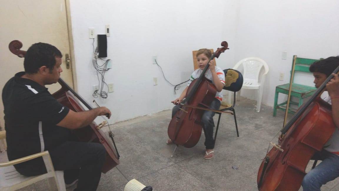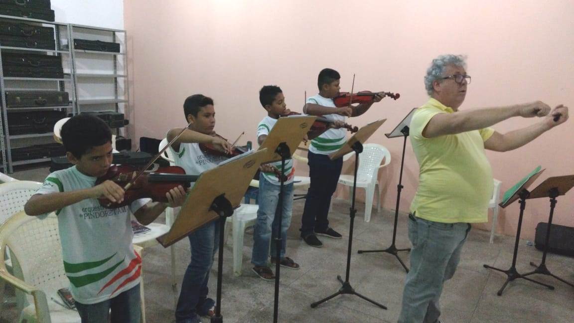 Através do projeto Escola de Música de Pindoretama, o Ponto de Cultura Amigos da Arte amplia as ações formativas da Orquestra de Sopros de Pindoretama e passa a oferecer também formação musical em instrumentos de cordas friccionadas como violino, viola, violoncelo e contrabaixo.
